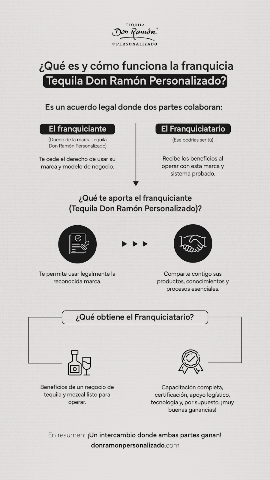 Y en esos tres ejes, la franquicia de Tequila Don Ramón Personalizado está estructurada para ofrecer ventajas competitivas claras.
